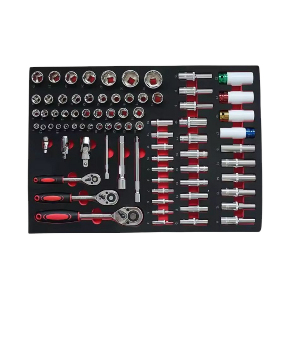 Tvirta ir funkcionali įrankių dėžė ant ratukų – tai puikus pasirinkimas tiek profesionaliam naudojimui, tiek namų meistrui. Dėžėje yra net 7 stalčiai, iš kurių 6 užpildyti 258 kokybiškais įrankiais, o 1 stalčius paliktas tuščias – jūsų papildomiems įrankiams ar detalėms.