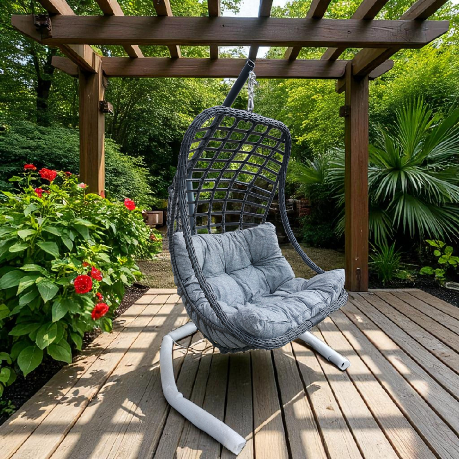 Vienvietė pakabinama kėdė su stovu – pilka (L / XL dydis)